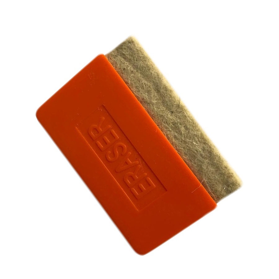 Губка предназначена для стирания маркеров с белых магнитно-маркерных досок сухим способом. Оснащена магнитной пластиной для крепления к доске. Губка сделана из твердого пластика, сверху вставляется сменное войлочное полотно.