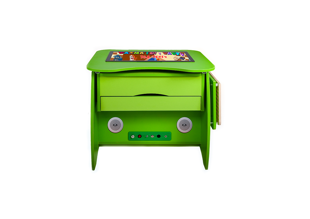 Отличительной особенностью логопедической парты является возможность изменения высоты парты и положения сенсорного монитора с горизонтали в вертикаль. Также, логопедический стол оснащен дополнительным модулем с дидактической мозаикой.