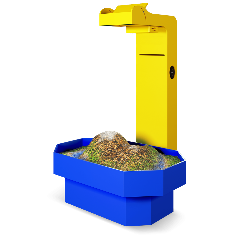Это развивающий комплекс, который объединяет в себе возможности интерактивной песочницы и сенсорного стола. Технология дополненной реальности превращает обычный песок в земную поверхность с озёрами и горами, вулканами и долинами. Дополнительные панели позволяют проводить занятия в режиме сенсорного стола.