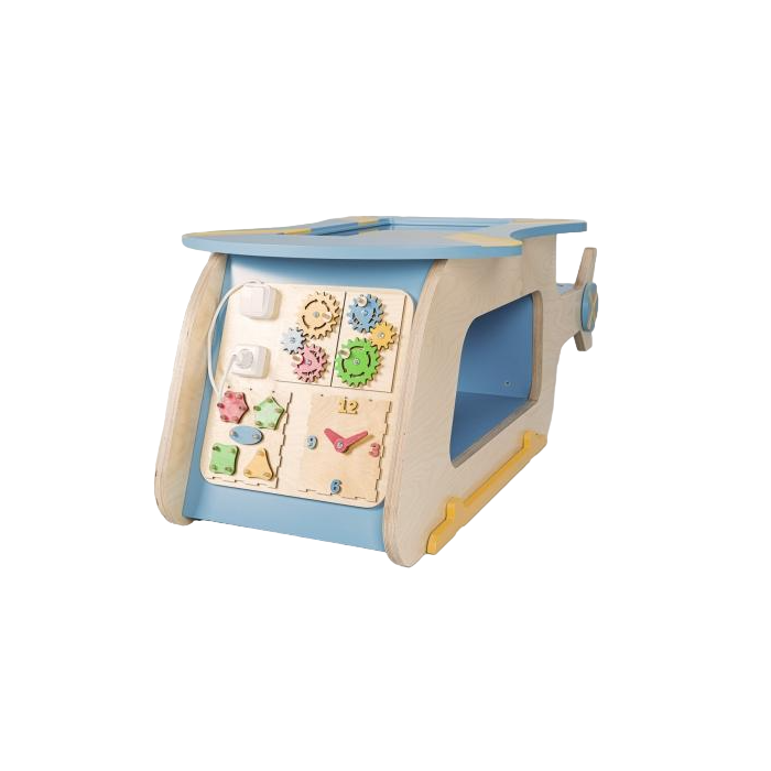 В носовой части МИК «Вертолёт» установлено тактильное панно Монтессори. Развивает мелкую моторику и логику, позволяет безопасно научиться пользоваться предметами быта.