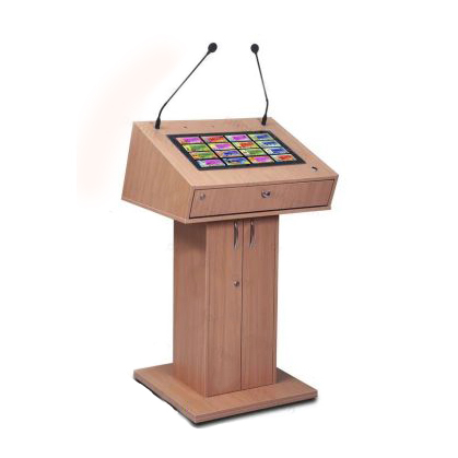 Встроенный в столешницу высокопроизводительный компьютер работает на ОС Windows 10, что позволяет докладчику без труда воспроизводить файлы различного формата. Мультимедийный цифровой подиум оснащен удобным сенсорным дисплеем диагональю 21,5 дюйма. Также для быстрого подключения микрофона и flash-накопителя в столешнице предусмотрены usb-разъемы.