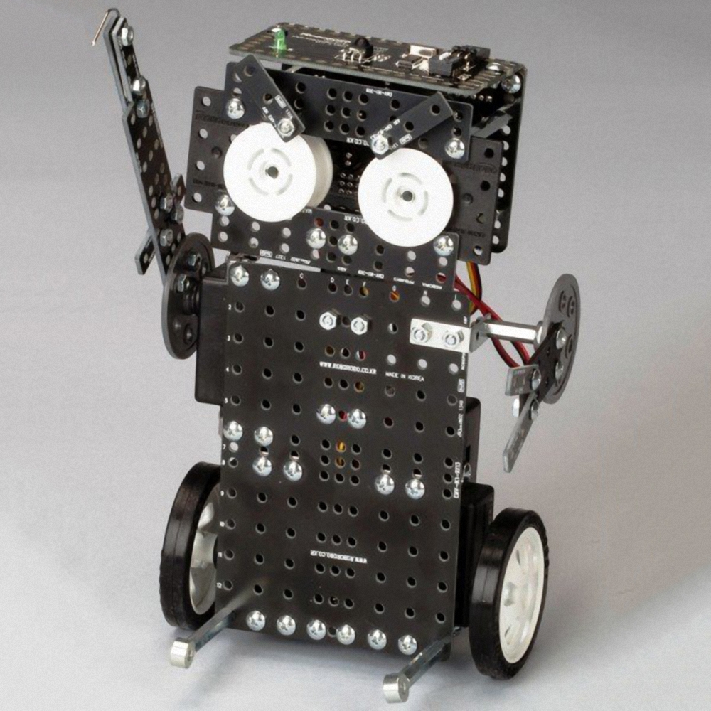 Ресурсный набор Robo Kit 3-4 – В комплекте находится достаточный перечень деталей и элементов, которые помогут собрать своего настоящего робота. С другой стороны, этот набор дополняет базовый Robo kit 3, не используется отдельно от него. В общей сложности совместно с базовым набором можно собрать 9 новых модификаций: автомобиль, робот с мечом, балансир и проч. Машины программируются на компьютере,  выполняют действия по алгоритму: двигаются, поднимают небольшой шарик и проч.