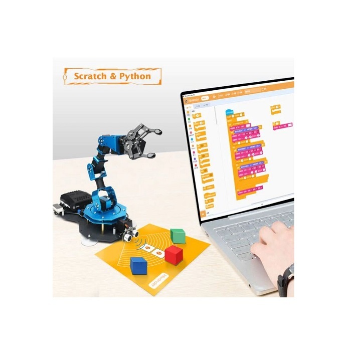 Расширенный комплект роботизированного манипулятора предназначен для углубленного изучения мехатроники, механики, физики и манипуляционных действий. Имеет три варианта программирования Scratch, Python и непосредственное управление моторами. Подходит для школы, техникумов и вузов. Функция распознавания цвета и расстояния. Различные варианты управления – ручное управление, джойстик, управление с помощью ПК, управление с телефона. Программирование осуществляется с помощью компьютера, телефона или в ручном режиме (без дополнительных устройств).