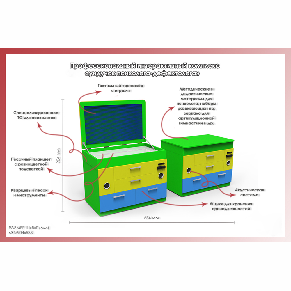 Профессиональный сундучок психолога-дефектолога. Оборудование подходит для установки в детских садах, интернатах, школах, коррекционно-развивающих центра, диспансерах.