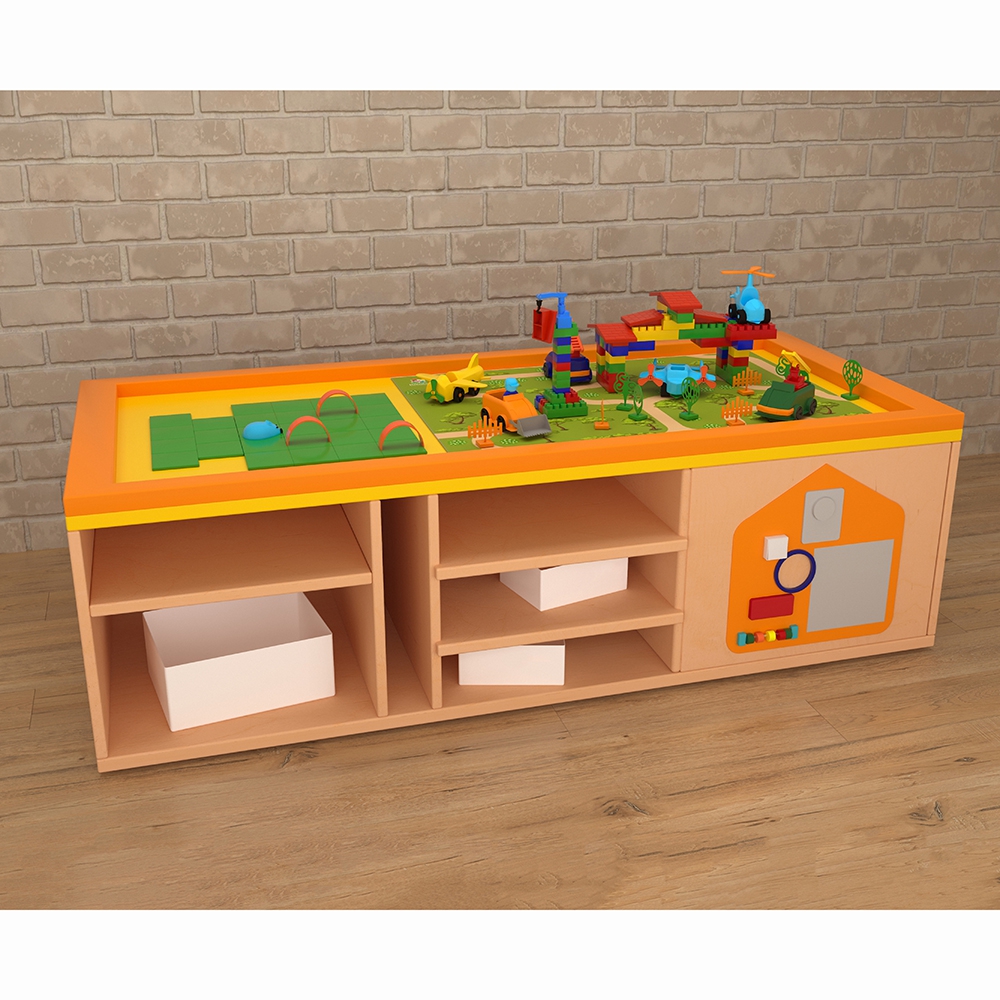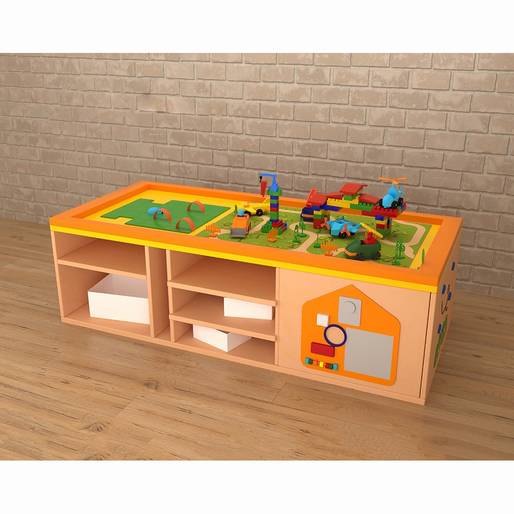 STEAM-стол “Море, суша и лес-2” – многофункциональный развивающий детский игровой модуль. Главное его преимущество – рациональное использование имеющихся площадей – на столешнице расположена лнндшафтная локация, а на боках стола – развивающие элементы и полки-ячейки; это делает его необходимым элементом оснащения пространства для занятий с детьми. Стол имеет колёсики – это позволяет без труда перемещать его сколько угодно раз по помещению, не задействуя большео количество силы. STEAM столы широко используются дошкольными педагогами и некоторыми узкими детскими специалистами – логопед, дефектолог, психолог – для групповых и индивидуальных занятий с детьми дошкольного и младшего школьного возраста.