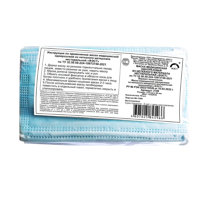 Маска медицинская нестерильная одноразовая (10 штук)
