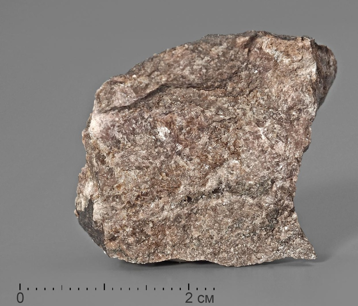 Зернистые красно-коричневые агрегаты ферродонита с сульфидами.