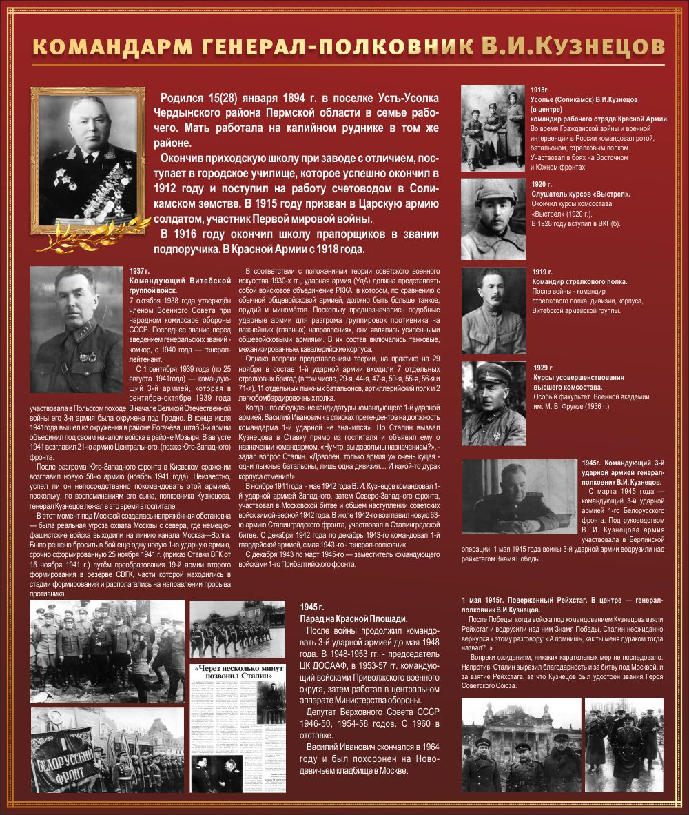Тематический исторический стенд "Командарм генерал-полковник ВИ Кузнецов"