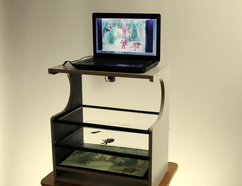 Для удобства работы с Мультстанком ноутбук может быть установлен на верхней панели, и снабжен специализированным программным обеспечением для автоматического захвата изображений, что значительно облегчает и ускоряет процесс съёмки мультфильмов.