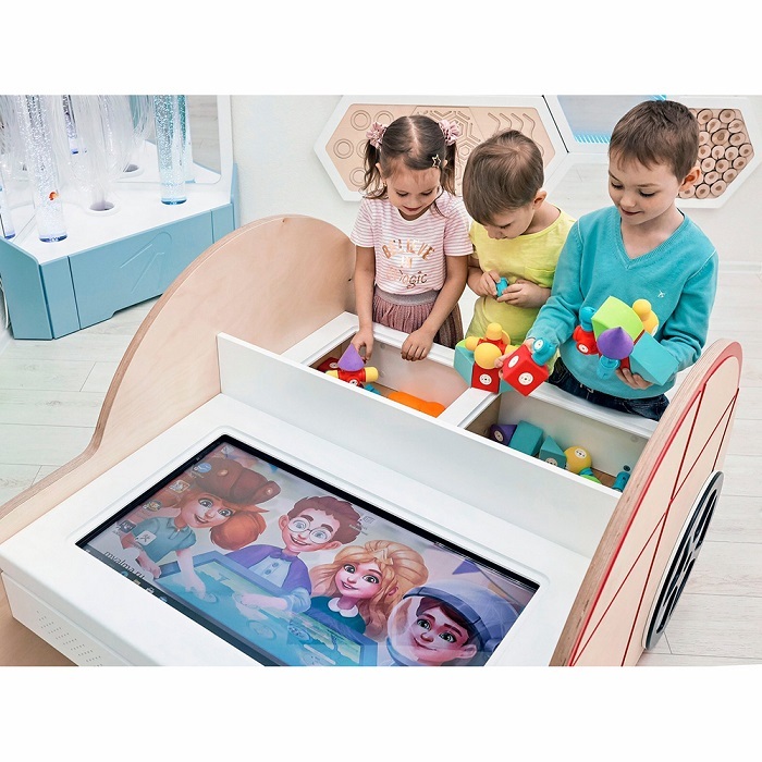 Присутствует функция разделения интерактивного экрана на 2 игровых сектора, что делает возможным задействовать как можно больше детей для групповой работы.
