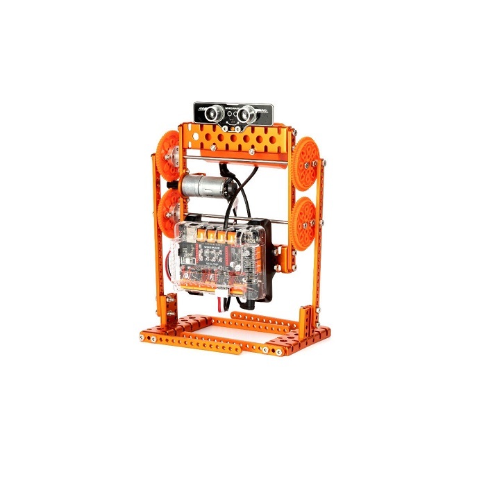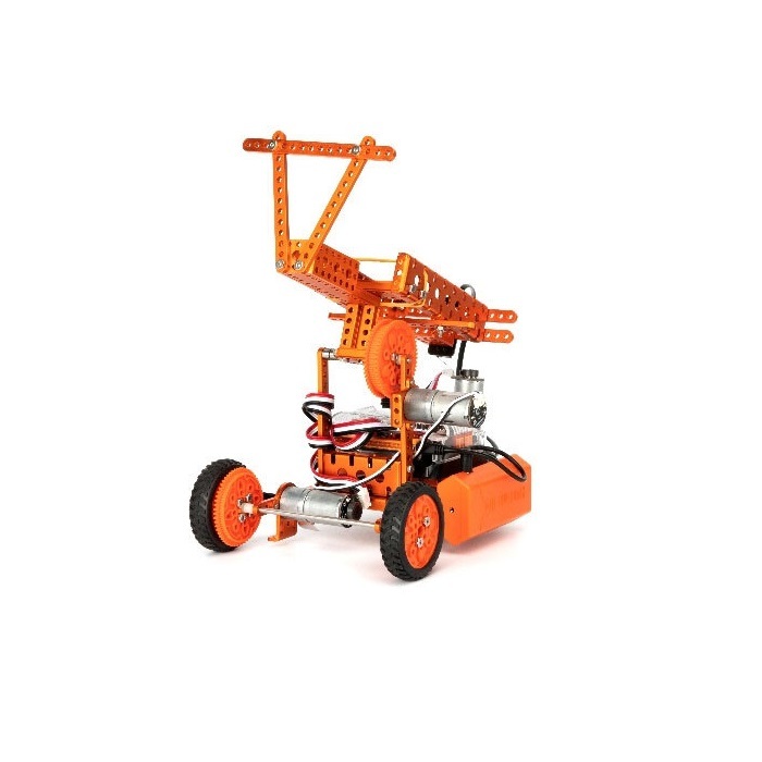 Набор содержит металлические конструктивные детали, пластиковые детали, электронные модули, инструменты, с помощью которых можно создать более 12 различных типов роботов.