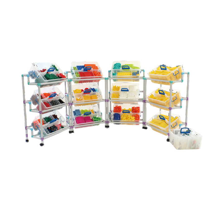 • Система хранения: Включает контейнеры и стойки для размещения готовых проектов и работ учащихся.