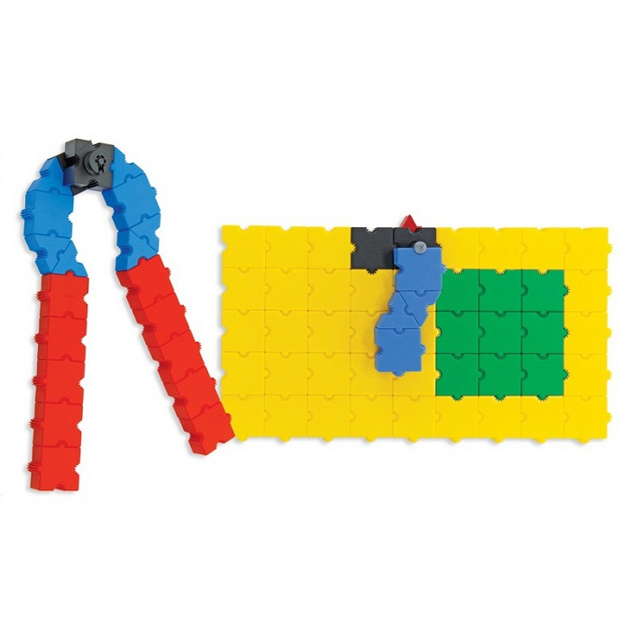Уникальный, запатентованный способ крепления деталей, двойной комплект деталей и рабочих карточек, позволит проводить занятия с детьми в группе по целому ряду предметов STEM-образования, включая математику, простейшую механику.