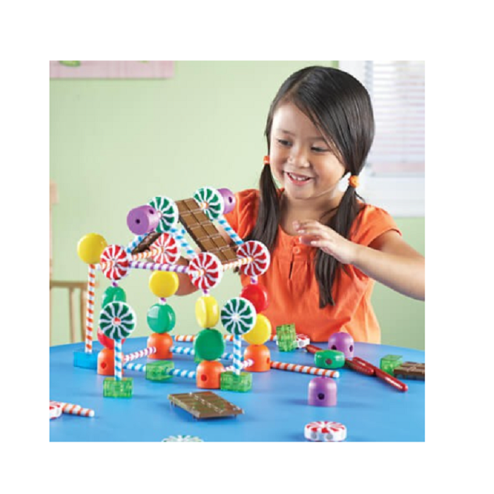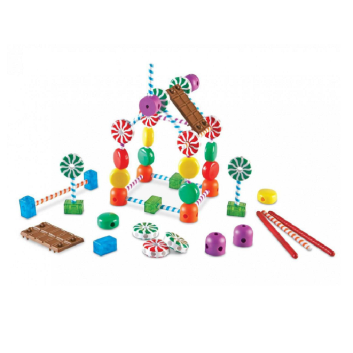 С помощью строительных блоков в виде конфет играть и познавать основы конструирования намного интереснее! Огромные мармеладки, леденцы, большие соединительные блоки и гигантские конфеты – с их помощью во время игры у ребенка развиваются навыки мелкой моторики, последовательное мышление, умение следовать инструкциям, пространственное воображение. Помогите ребенку построить Коляску-Вкусняшку, Сладкую карусель , Лакомые качели и Сахарную избушку.