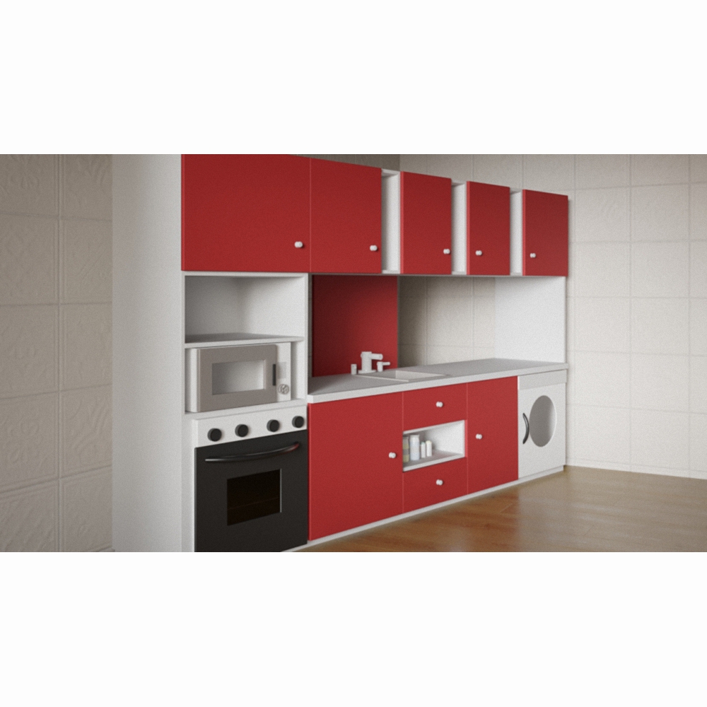 Многочисленные закрытые шкафчики помогут разместить все необходимое для приготовления пищи, а стиральная машина, духовой шкаф, СВЧ-печь и рукомойник со смесителем поможет сделать игру разнообразнее, развивая детское воображение и навыки самообслуживания.