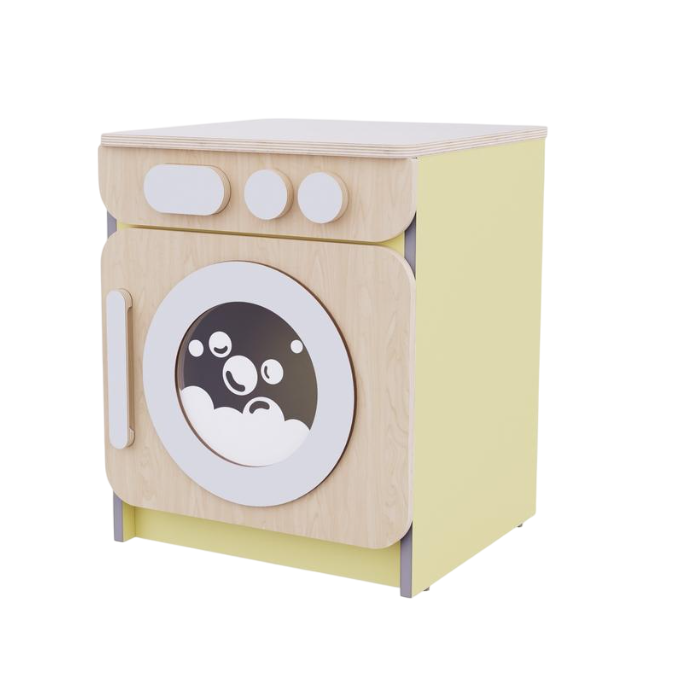 Эстетичный внешний вид: Натуральное дерево и привлекательный дизайн делают стиральную машину не только игрушкой, но и стильным дополнением к игровому пространству детского сада.