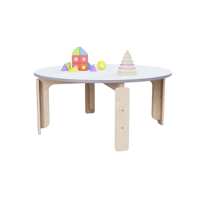 Круглый растущий стол из коллекции «НЕГА» с плавными линиями обеспечивает безопасное перемещение детей, как для приема пищи, так и для игровых зон.