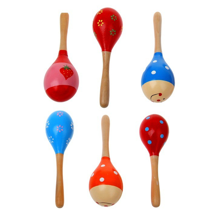 В ассортименте представлены 6 маракасов веселой пестрой расцветки.
