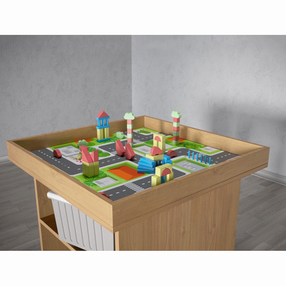 Этот стол отличное решение для обучения вашего ребенка. Стол устойчив, благодаря своим прочным ножкам. Бортики столешницы высокие, они уберегут конструктор ребенка от потери. В столе есть полка с ящиком, которая поможет организовать дополнительное место для хранения. На столешнице красочный рисунок с дорогой, разделительной полосой, знаками дорожного движения, светофорами, деревьями и т.д. В комплекте есть конструктор, который поможет ребенку заниматься и играть веселее. Предназначен для детей от 3-х лет.