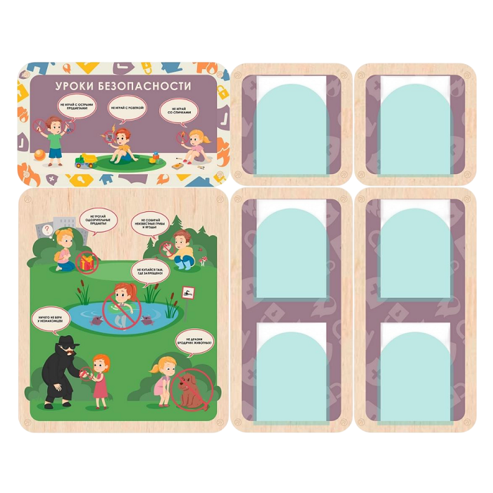 — Обучение и просвещение детей. Главная цель этих стендов - научить детей безопасному поведению в различных ситуациях. Они используют визуализацию и доступные объяснения, чтобы помочь ребёнку лучше понять и запомнить правила безопасности.
