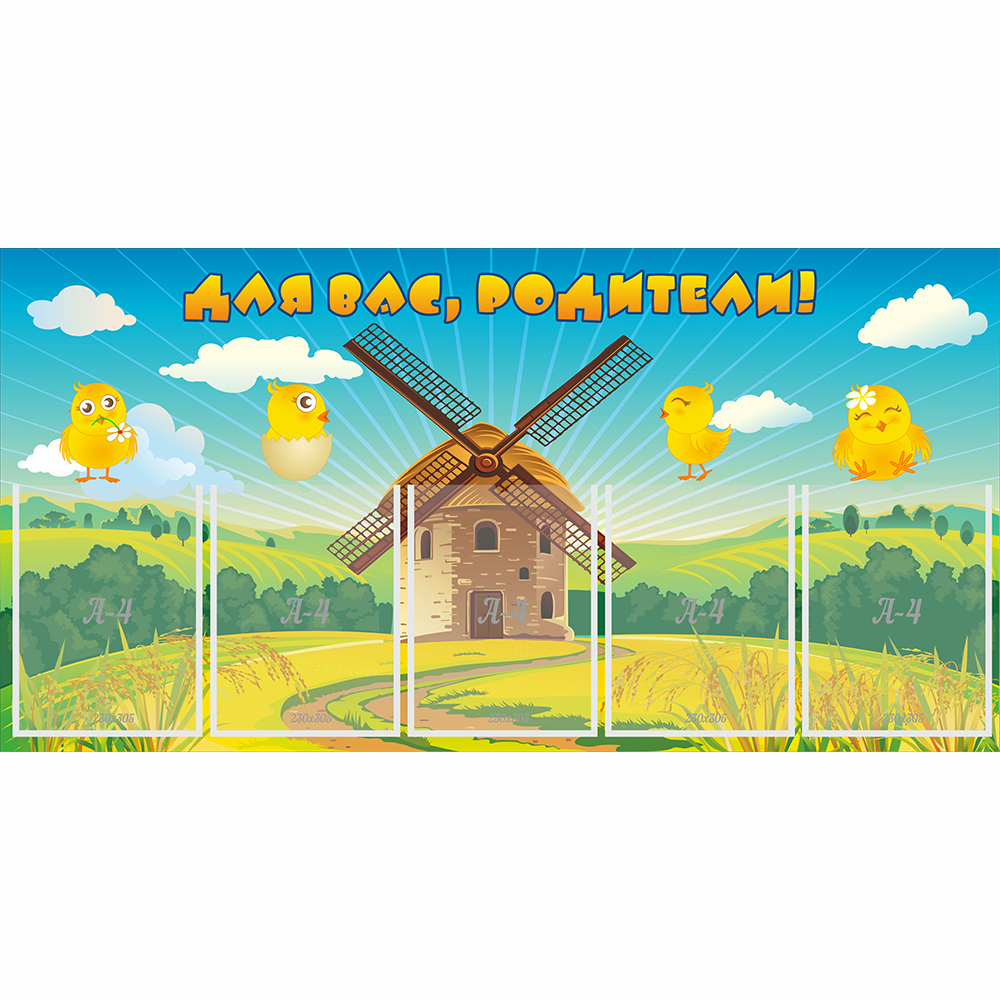Мы предлагаем вашему вниманию информационный стенд для родителей, который просто идеально подходит любому детскому саду, благодаря универсальному изображению и цветовому решению. К тому же стенд практичный, на нем можно разместить сразу несколько объявлений, свод правил и множество другой полезной каждому родителю информации. Лучшее решение для каждого современного детского сада.