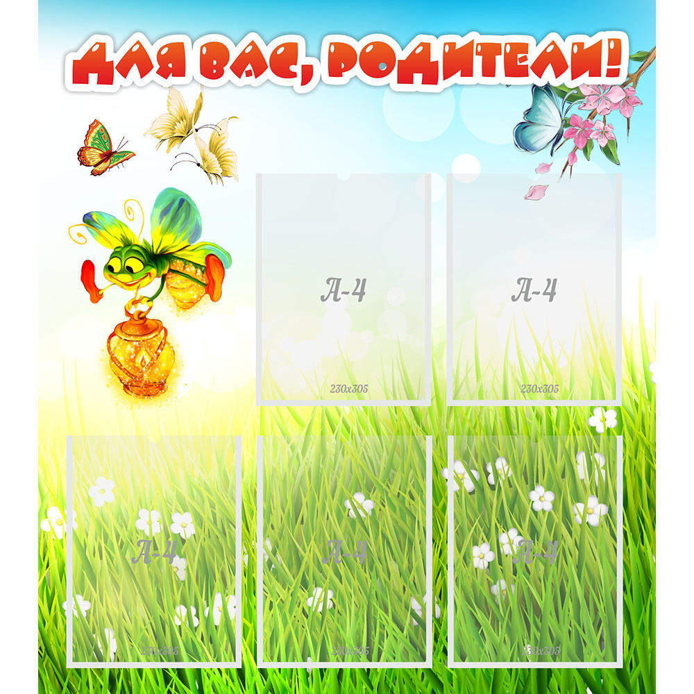 Стенд "Для вас родители!" с 5 карманами.