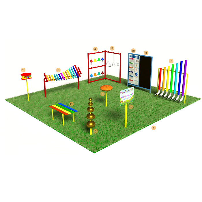 Главная Каталог Подготовительная группа и детский сад Развивающее игровое оборудование (производство Россия) Игровые комплексы для детских садов Музыкальная площадка (комплект Оптима без ограждения)