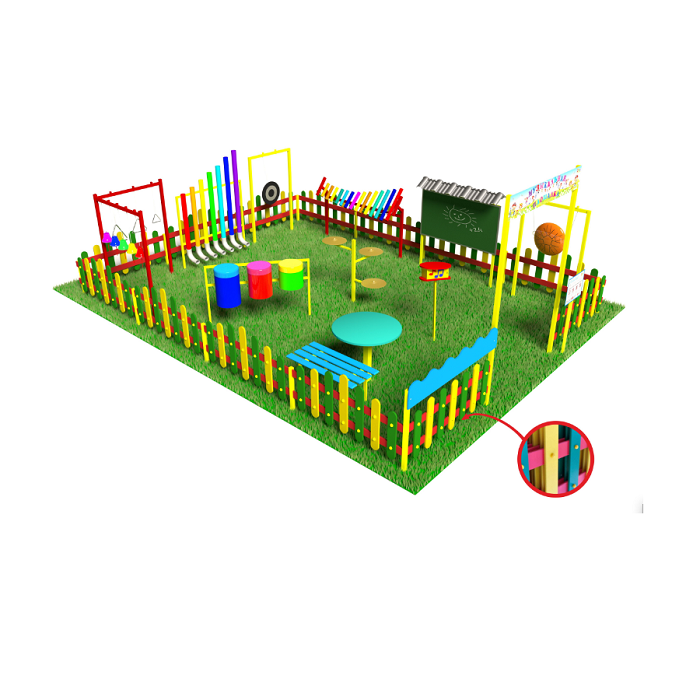 Комплекс предназначен для установки на территории детского сада, прост в использовании и подходит для занятий круглый год.
