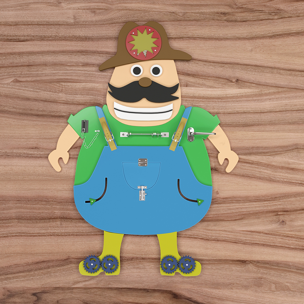 Бизиборд «Умелый садовник» украсит любую детскую комнату, а также игровую детского сада, школы и развлекательного центра, что разнообразит занятия, улучшит память, мелкую моторику и мышление ребенка.