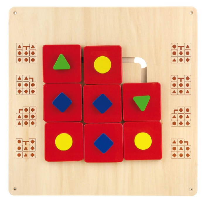 Игра настенная "Лабиринт из форм" предназначена для развития мелкой моторики, координации движения и логического мышления. Знакомит детей с различными геометрическими формами и цветами.