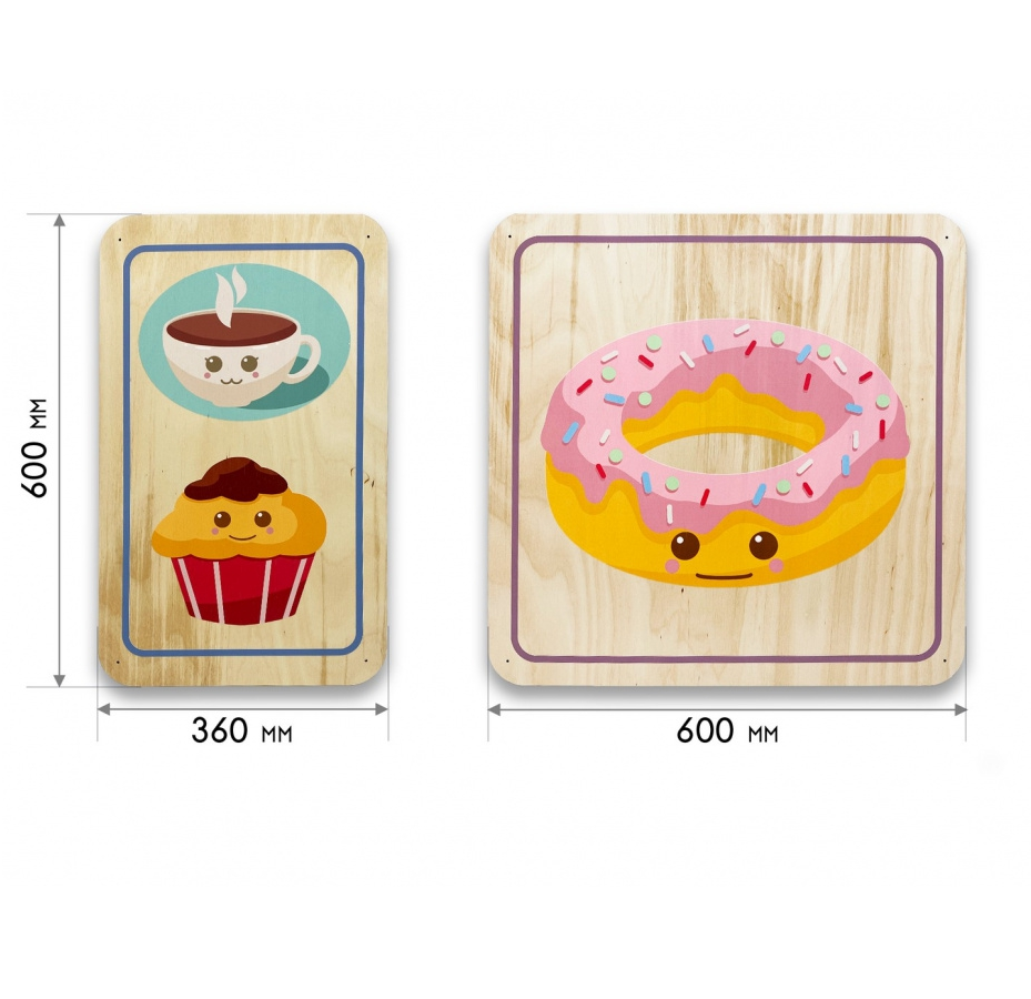 Дополнительные модули бывают однотонные и с тематическими иллюстрациями, подходящими под тематику дидактических панелей. Разнообразие размеров способствует декорированию стен различной конфигурации и масштабов. Параметры варьируются от совсем маленьких модулей 300х300 мм до крупных размеров 600х600 мм.