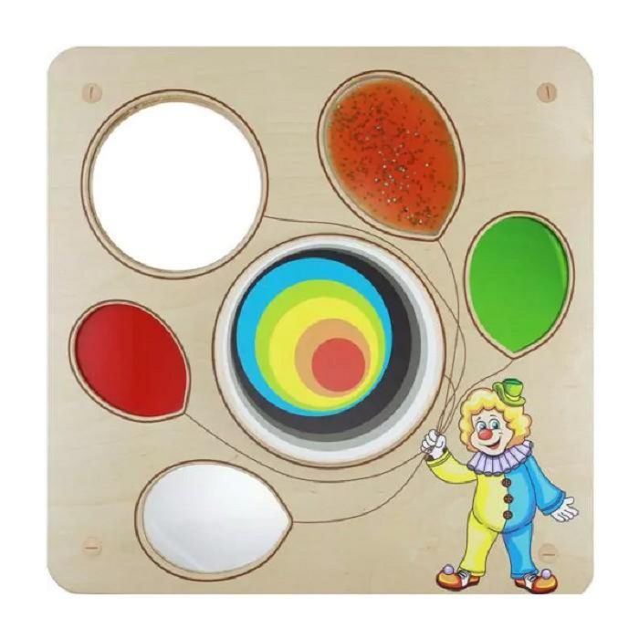Клоун и воздушный шар — всегда одна из лучших комбинаций, которая может легко привлечь внимание маленьких детей. Настенные элементы предлагают выбор визуальных и тактильных сенсорных тренировочных элементов, включая зеркало, цветное отражение, вогнутое зеркало и т. д. Вращающееся колесо посередине также идеально подходит для тренировки навыков концентрации.