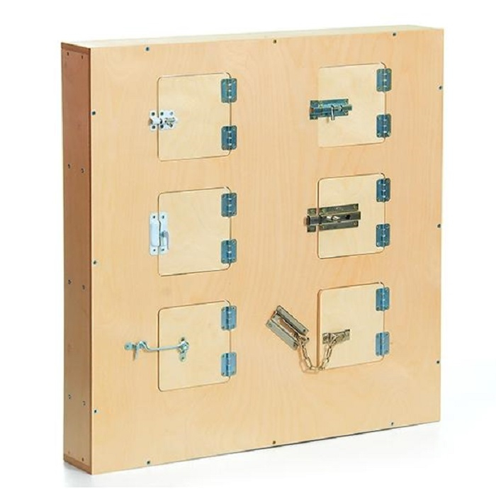 Главная Каталог Подготовительная группа и детский сад Сенсомоторное развитие Сенсорные панели для детей Панель "Замочки" (вариант 2)