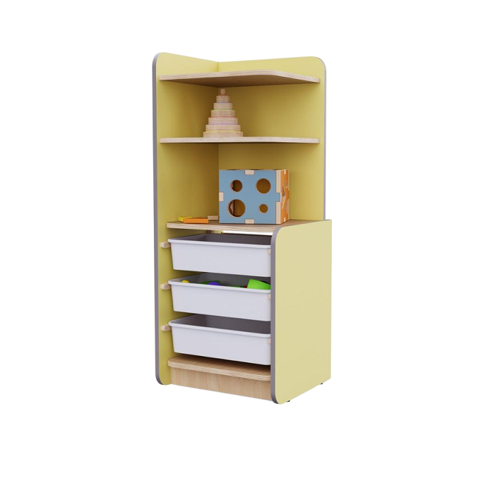 Угловой шкаф с тремя ящиками сконструирован для оформления углового пространства игровых комнат в детских учреждениях. Подходит для оснащения детских садов, организаций дополнительного детского образования, игровых комнат в ресторанах, торговых центрах и детских лагерях. С угловым шкафом можно легко создать систематизированное хранение и атмосферу порядка в ДОУ.