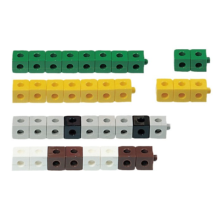 - Обучение счету. Выберите 10 кубиков одного цвета и посчитайте их вместе с ребенком. Затем соедините две группы кубиков разного цвета (например, 2 зеленых и 3 красных) и предложите малышу сравнить, какая группа больше.