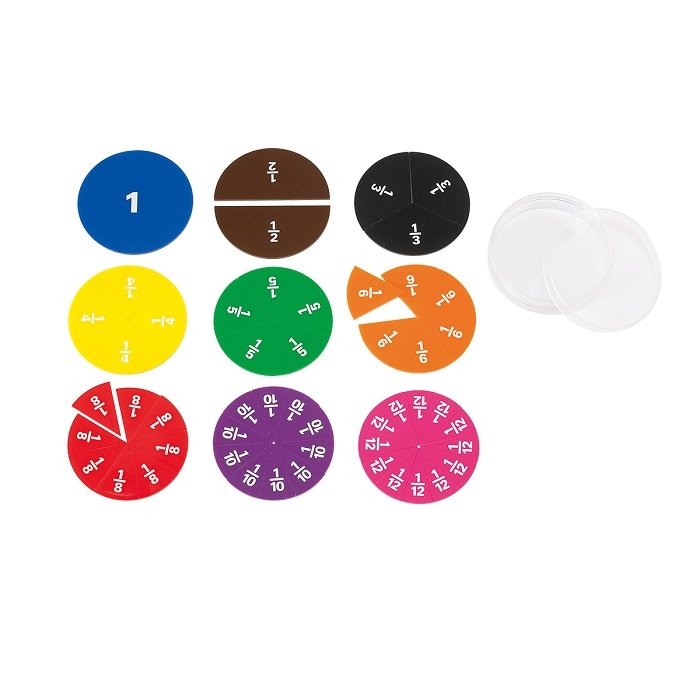 Набор «Круги. Дроби» предназначен для наглядного изучения понятий "часть" и "целое", для знакомства с дробями, демонстрации равенства, сложения и вычитания с дробями.