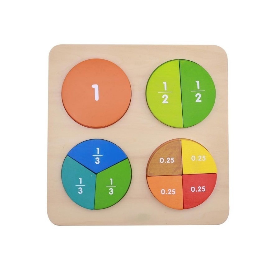 Панель для легкого изучения дробей. Дроби и цифры напечатаны с двух сторон каждого блока.