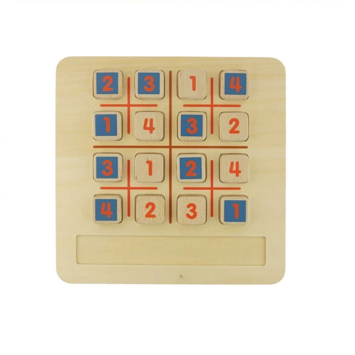 Основание панели из березовой фанеры, на лицевой части представлена японская игра-головоломка Судоку, основана на логическом расположении цифр. Игра на логику, которая не требует вычислений или же особых математических навыков. Блоки на панели выполнены из бука.