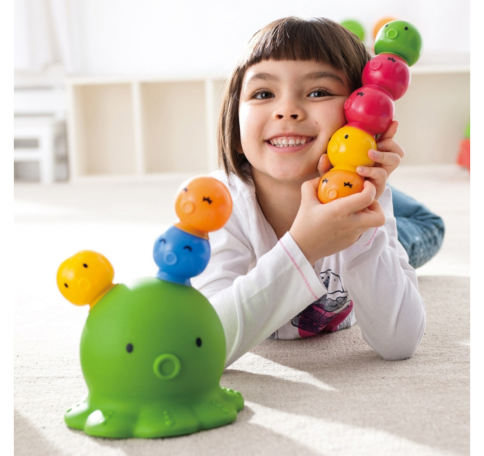 Комплект изготовлен из мягкого материала и имеет симпатичную форму, привлекающую внимание детей. Конструкция присоски позволяет элементам легко соединяться друг с другом. Элементы можно свободно соединять под разными углами, это вдохновляет воображение и творчество. Во время ходьбы с большой медузой на голове, дети учатся сохранять правильную осанку и развивают навыки равновесия.