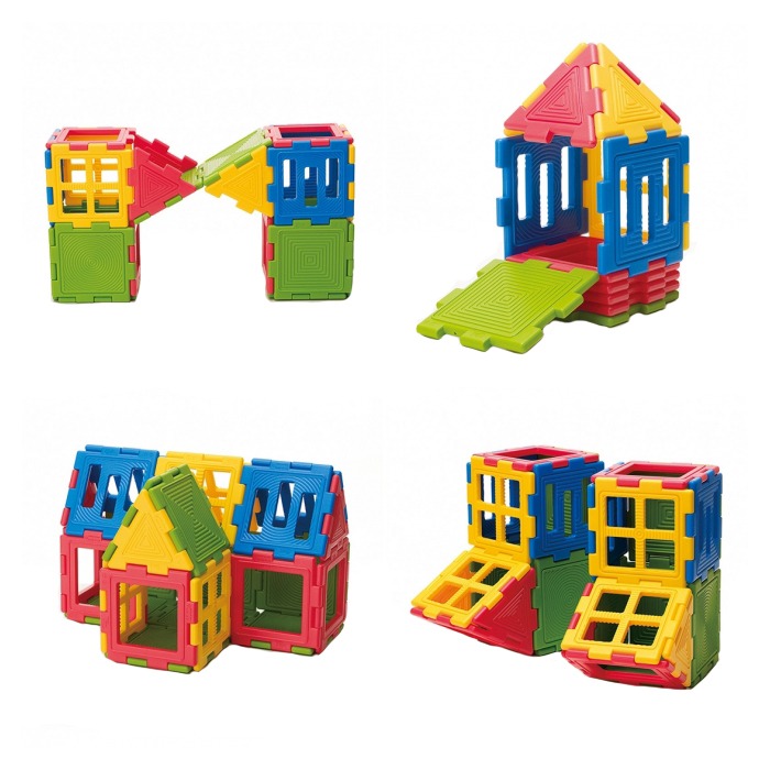 Блоки с окнами в разных формах помогают детям изучать основные 2D и 3D-геометрические фигуры, такие как кубы и призмы, и строить бесчисленные формы с бесконечным воображением