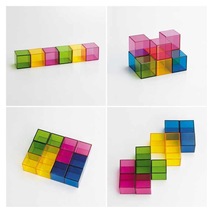 Выполненные детали конструктора в цветах радуги, позволяют детям познакомиться с пространственным искусством, конструируя различные формы и изображения. Это первая игра на распознавание цветов для детей младшего возраста.