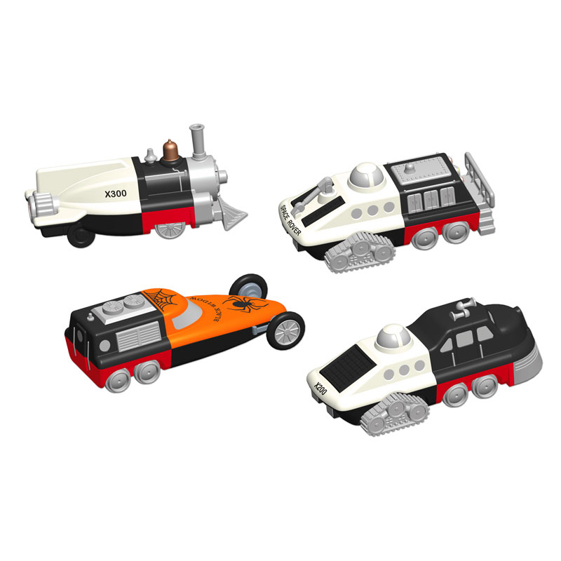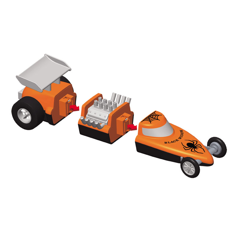 Новые цветовые решения должны понравиться тем, кто хочет видеть в моделях автомобилей большего соответствия реальным машинам, и Вы можете собрать модели гоночных автомобилей - хот-род, гоночный пикап, драгстер. А можете создать модель собственной конструкции фантастического транспортного средства, воспользовавшись тем, что детали конструкторов Транспорт "Смешай и собери" совместимы. Вы испытаете радостное чувство достижения успеха.