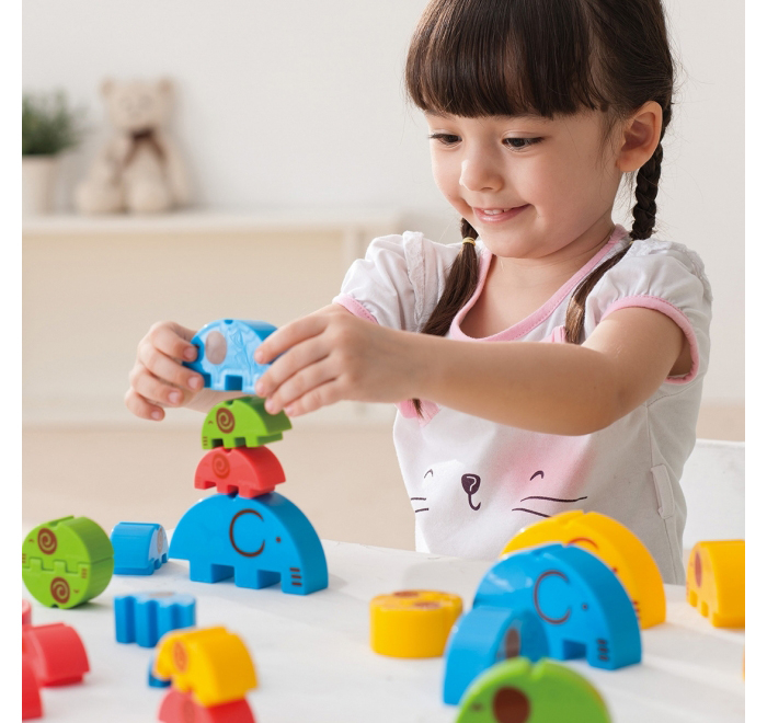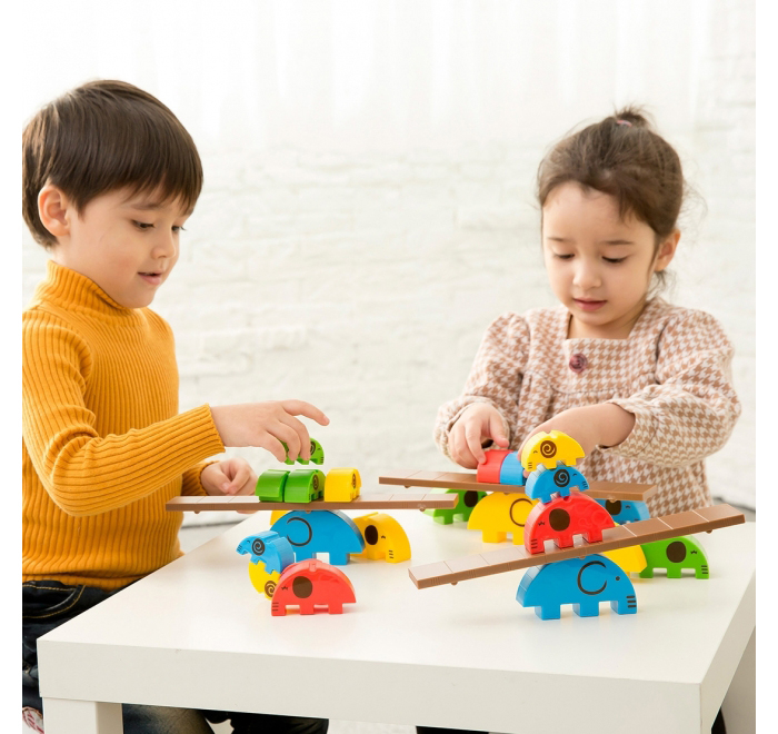 Эти милые и красочные блоки со слонами представлены в трех размерах и весах. Блоки имеют соотношение веса 4:2:1 для различных возможностей обучения и творчества. Два блока можно соединить в круг для игры в перекатывание. Штабелируемые блоки позволяют проводить игры на разных уровнях. Доски имеют выемки и могут использоваться как качели для балансировки.
