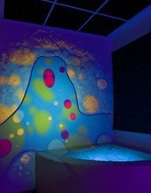 Стеклянный диск заполненный разноцветной жидкостью, при вращении возникает эффект перетекания и смены рисунков. Для проекторов "Меркурий".