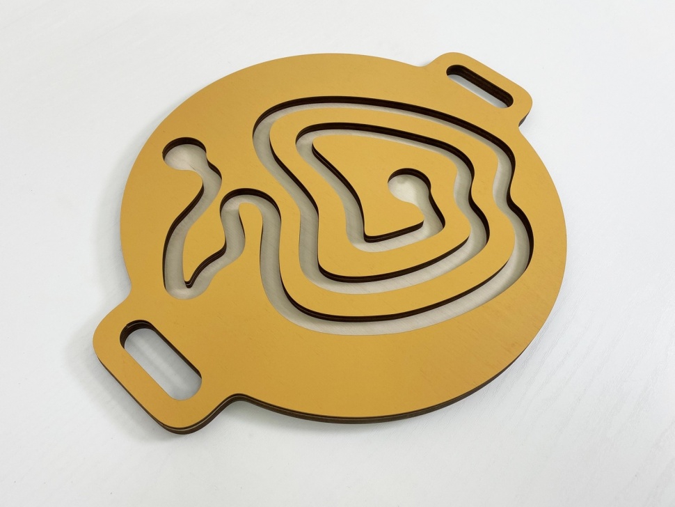 Это игровой тренажёр для развития мозга и координации движений. На круглой доске с двумя ручками по бокам выполнен лабиринт, по которому нужно прокатить шарик с помощью согласованных движений рук.