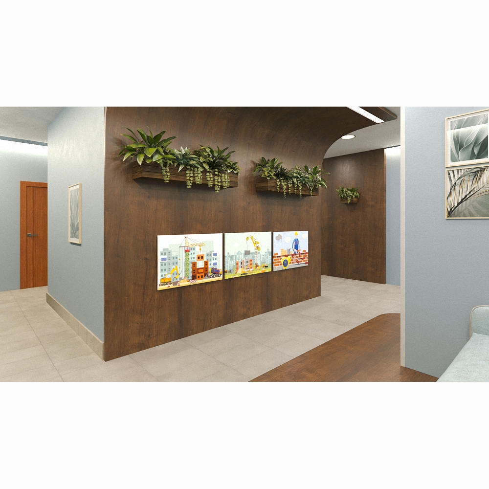 Комплект настенных панелей «Стройка» состоит из 3-х прямоугольных частей; они выполнены в одном размере и оформлены в одной цветовой гамме. На каждой панели изображены части стройки с разных ракурсов. Безопасно крепятся к стене, покрытие панелей наивысшего качества обеспечит безопасность при игре.